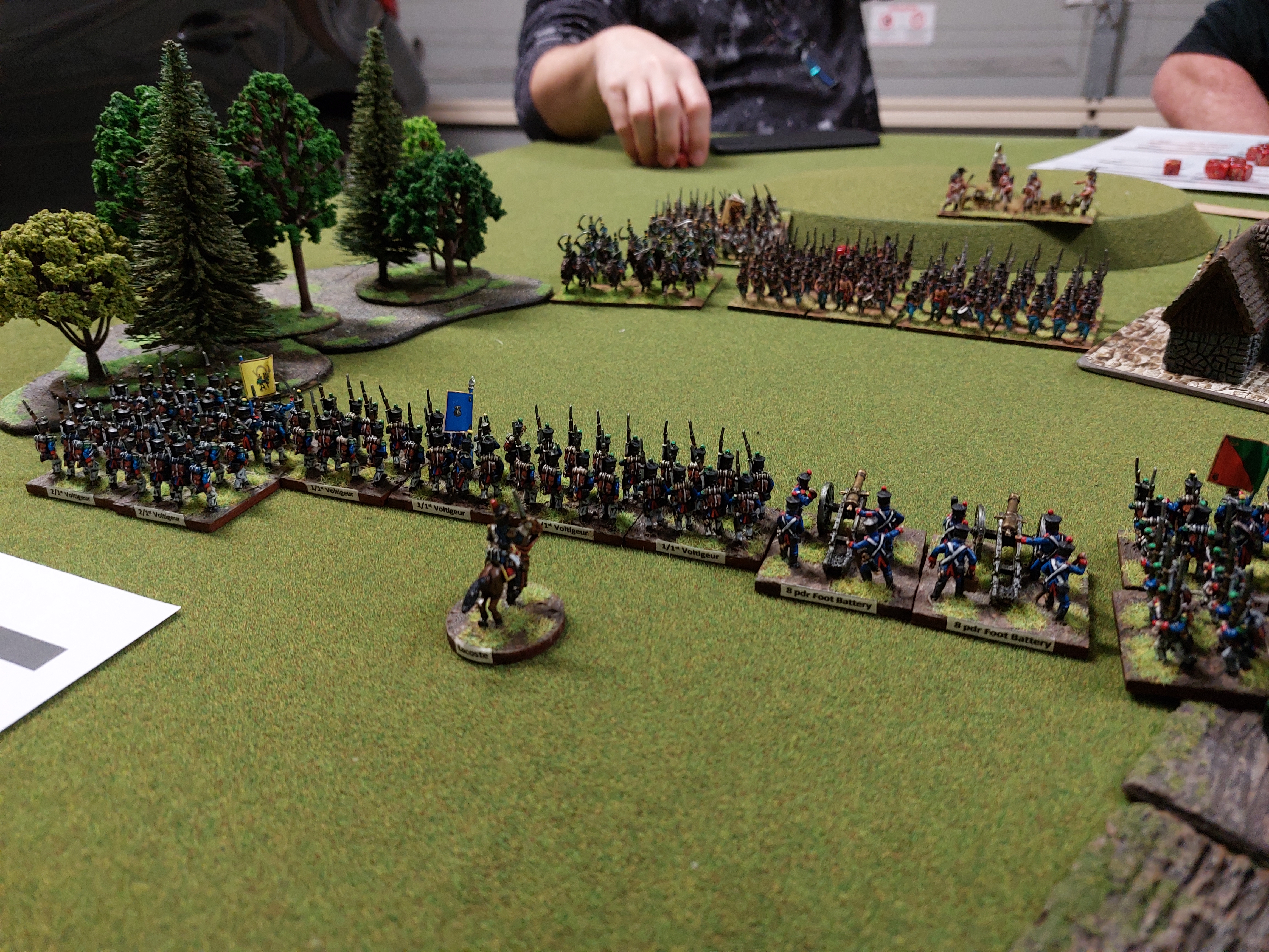 Our game was ... run up and murder each other - rather than a scenario. My opponent and I both like the 1/3 sudden death victory condition - so we used that. After an initiative roll off, it was the Austrians to go first. With great haste they rushed across the field - using their maximum movement in march column. They pushed 3 of their 4 batteries to the front of their attacks and changed formation. A bombardment activation followed - hoping for many bounce through effects on the still marching French formations. A few hits resulted by nothing too serious.